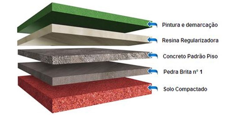 O Piso de Concreto é feito com concreto polido, resinado e pintado, é o tipo de piso mais resistente, é ideal para areas de recreação, por se o tipo menos delicado, além de se jogar as práticas esportivas, também pode ser aconselhado para patinar, andar de bicicleta, skate, realização de festas, etc.