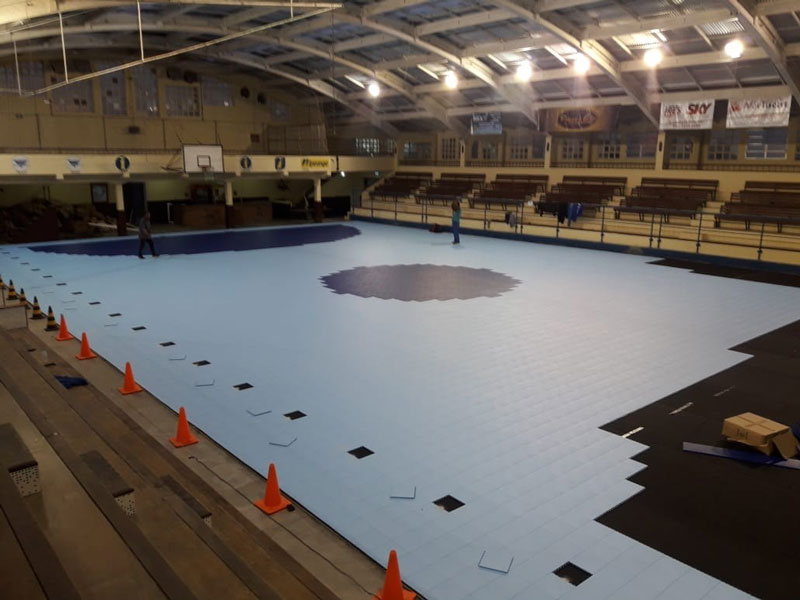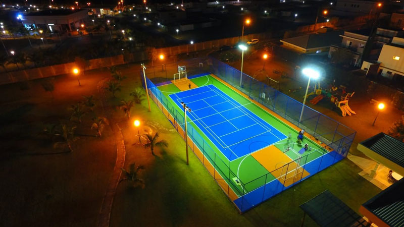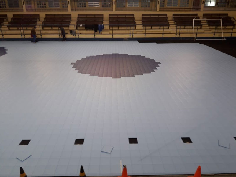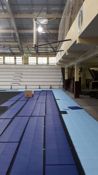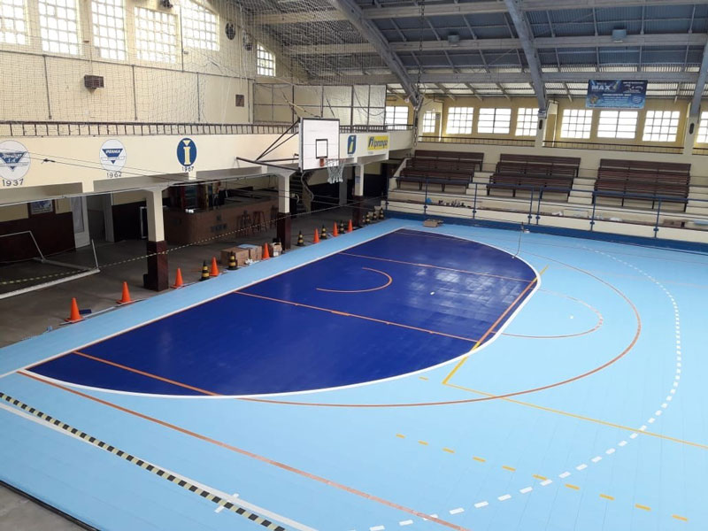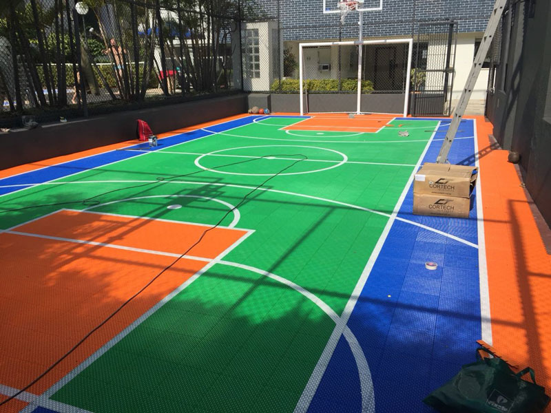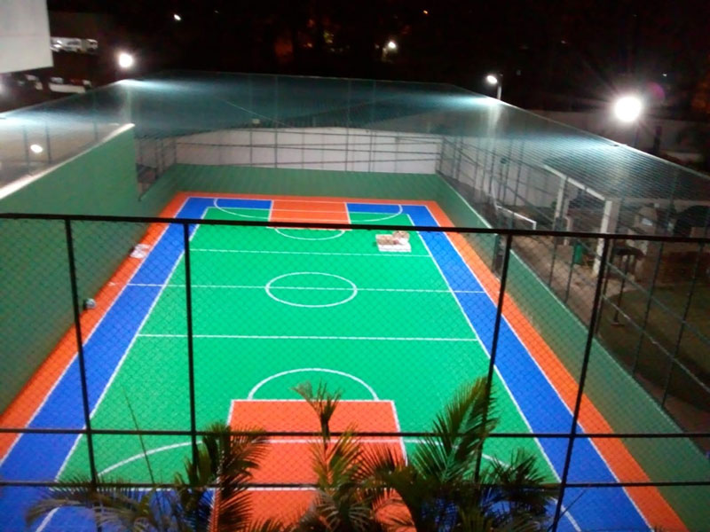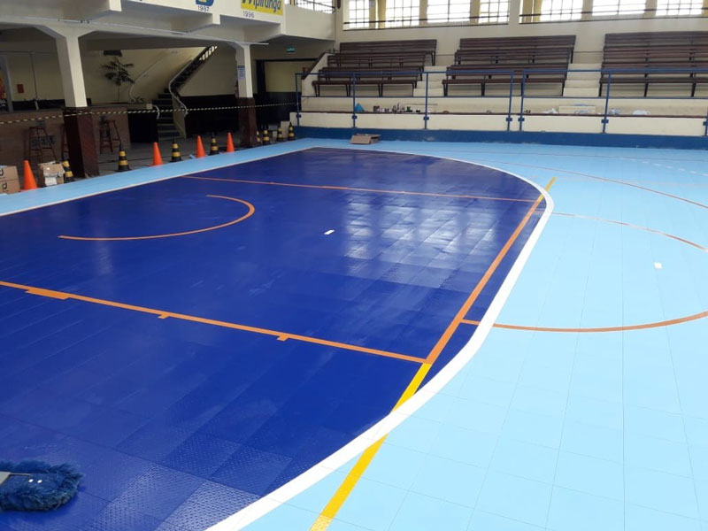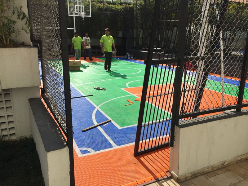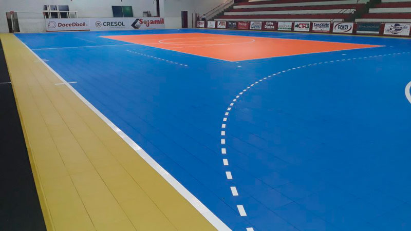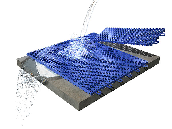 Piso esportivo flexível, drenante, em placas intertravadas modulares de PP (polipropileno) de alto impacto, com encaixes macho-e-fêmea, indicado para o uso em áreas externas devido à sua excelente capacidade de drenagem de águas pluviais. Oferece maior estabilidade para a prática esportiva de alto desempenho, com baixo custo de manutenção, sendo aprovado por diversas Federações Esportivas Internacionais.