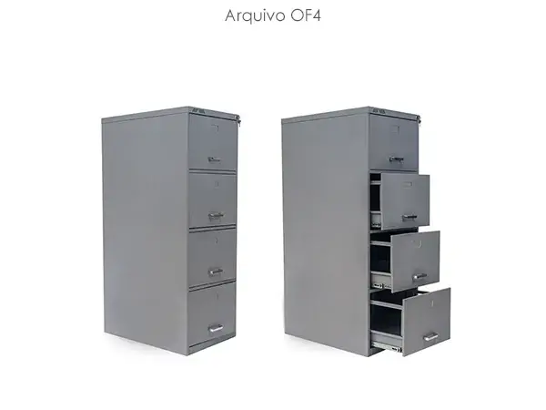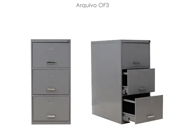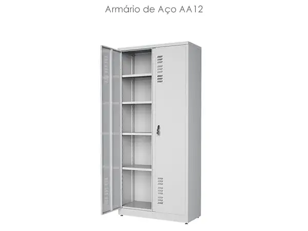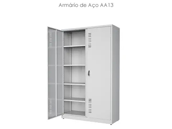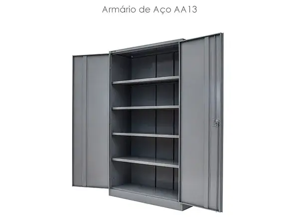 Possuem portas de abrir ou correr, e também modelos com divisões para melhor armazenar pastas tipo AZ. O armário recebe pintura epóxi