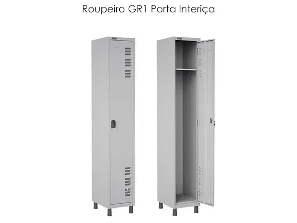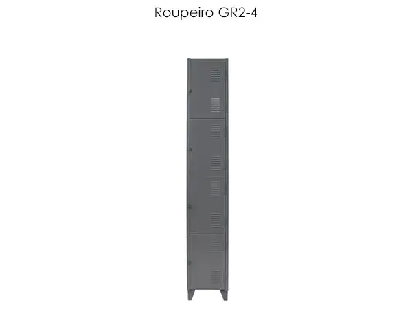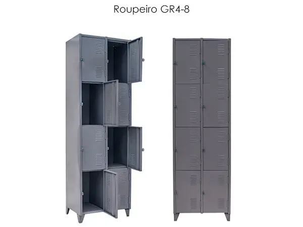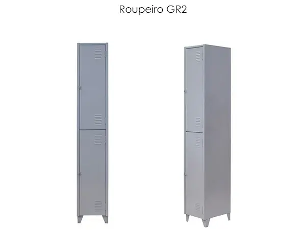 Dotado de portas sobrepostas com dobras laterais e um reforço central dando maior resistência e excelente acabamento, com dobradiças internas cada, Portas com sistema de ventilação vertical proporcionando ótima ventilação no interior do vão. Sistema de travamento das portas através de (pitão) ou (chave) com travamento triplo fechamento lateral, para baixo e para cima, dispositivo desenvolvido com a ultima tecnologia, para colocação de cadeado n.º 25, dificultando o arrombamento das portas. Possui em cada vão cabideiros tipo gancho. Possui 04 (quatro) pés, em polipropileno de alta densidade e sapatas niveladoras, sistema inovador pois são removíveis onde possibilita sua substituição e praticidade no transporte.